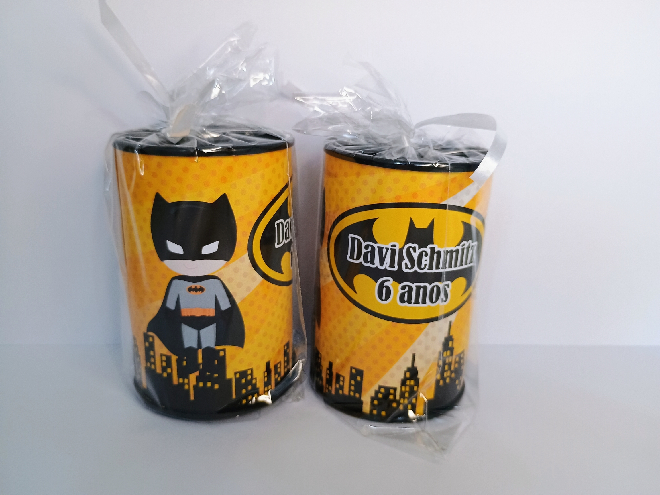 Cofrinho de papelão com tampa plástica colorida enviada de acordo com o tema e disponibilidade do estoque